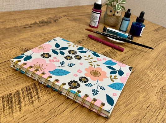 Small (5x7), Wire-bound Light Pink Floral, Watercolor Journal