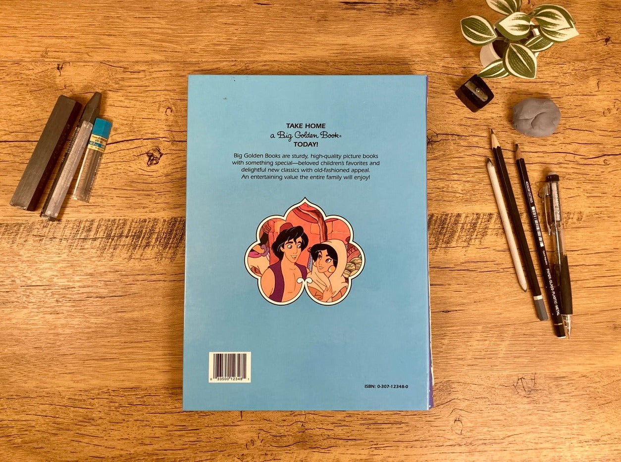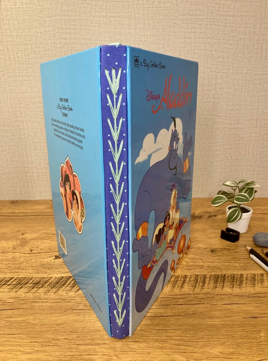 Hardcover, children's altered-book: Aladdin, Disney, inside cover with original Aladdin book paper