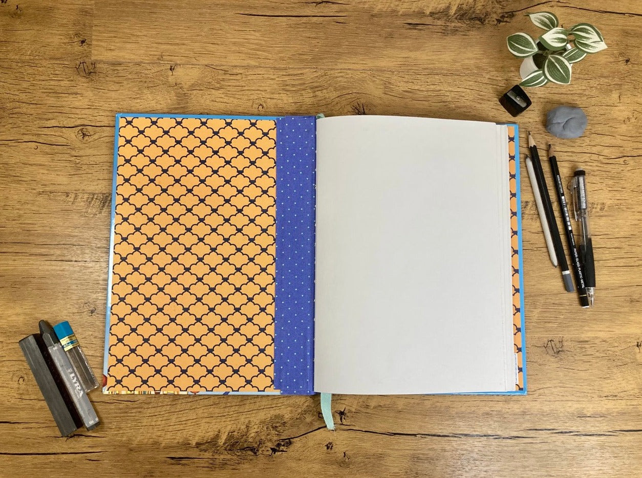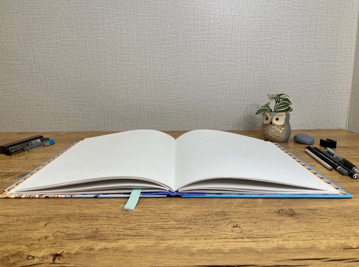This large, drawing journal made from an altered book cover is perfect for princesses with a creative side! It's a a journal with 84 pages of drawing paper and a lay-flat, hand-sewn binding for easier drawing. A bookmark lets you save your progress. It's ideal for artists and creative people alike.