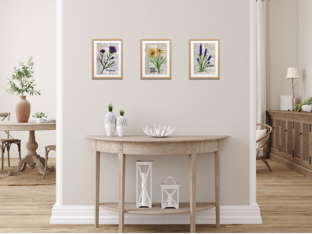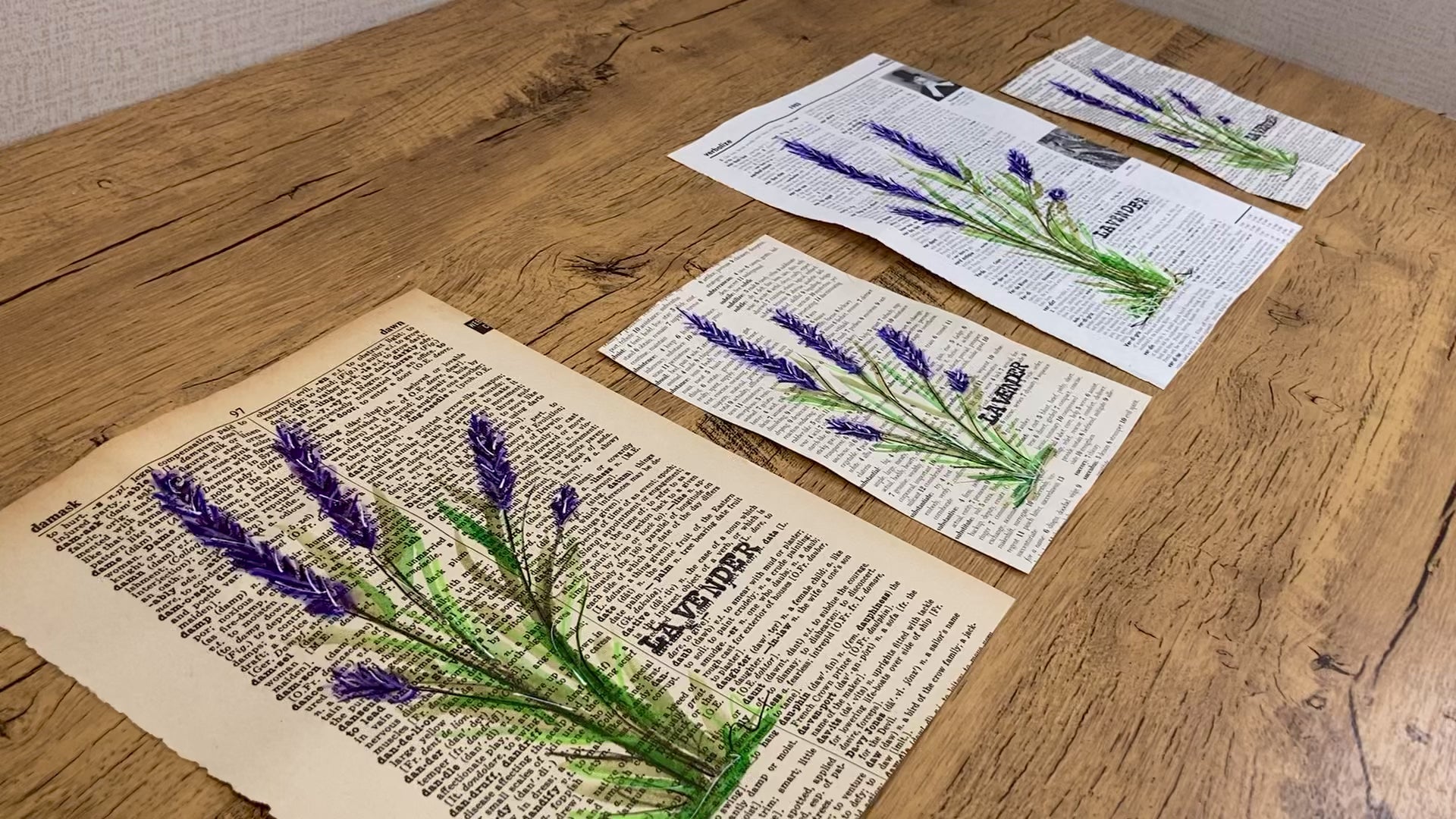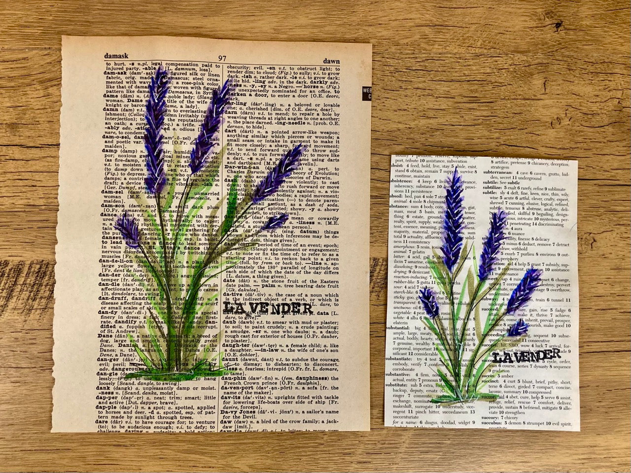 Bring a beautiful vintage look to your home with an original lavender floral painting. Each one is hand painted on an upcycled dictionary page, making them unique and special. This is not a print.